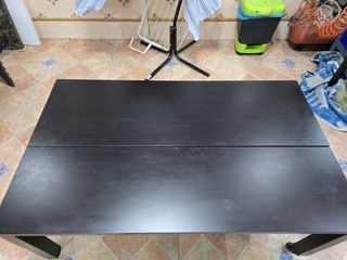 La mesa la vendo porque me he mudado a un piso en donde no cabe, y está como nueva, ya que siempre la tenía con una manta protectora gruesa. Este modelo está descatalogado en la tienda, ya que las medidas son más grandes de las que hay ahora: Se extiende de 180 a 240cm. Es perfecta como mesa familiar o para invitados. La entrego desmontada tras la mudanza, las patas están dentro de una funda de plástico junto con todos los tornillos de montaje, cuyas instrucciones se pueden descargar de la web de Ikea buscando la mesa (así de fácil). Me sobraron 2 sillas modelo Ekedalen también, marrones a juego. Se pueden incluir.