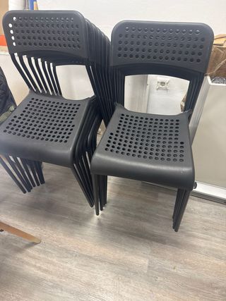 Conjunto de 15 sillas de diseño moderno. - Asiento y respaldo perforados. - Patas metálicas finas.