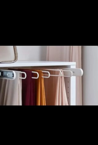Perchero para pantalones de Ikea, ideal para organizar tu armario. Se incluyen 3 percheros. Son de metal y plástico, de color blanco y estan en buen estado. Se venden por reorganización de armario.