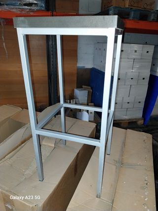 Taburetes altos para barra / isla cocina estilo industrial, con asiento en madera maciza. Se vende conjunto de 4 unidades. Nuevos a estrenar.