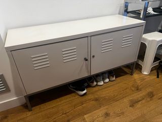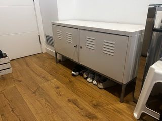 Mueble de estilo industrial con un diseño moderno y funcional. - Estructura principal en metal. - puede ser un zapatero - Archivador - etc