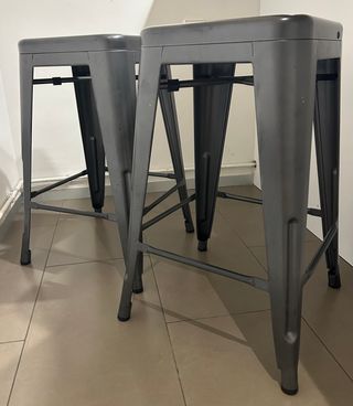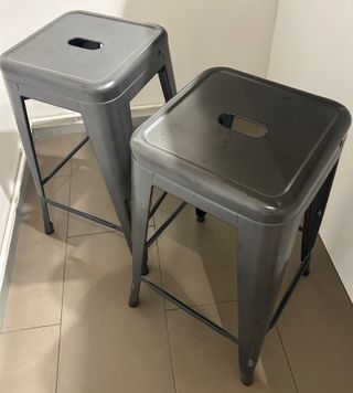 Conjunto de dos taburetes de estilo industrial. Se retiran en Mitre y Muntaner, BCN.