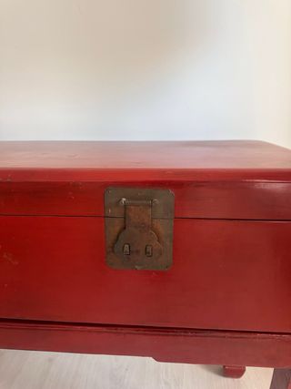 Arcón oriental decorado — pieza única Espectacular arcón chino antiguo con bellos motivos pintados a mano en tonos rojos, dorados y azulados. Una pieza con mucho carácter y estilo oriental, perfecta para dar un toque exótico y distinguido a tu hogar. Apertura frontal, ideal para guardar mantas, cojines, ropa de cama o cualquier cosa. Medidas: 113x50x93 cm (ancho/fondo/alto). En buen estado general, solo necesita algún pequeño detalle de restauración. Ideal para amantes de la decoración vintage, muebles con historia o espacios con personalidad. ¡Una oportunidad única para tener una pieza diferente! Recoger QUIJORNA