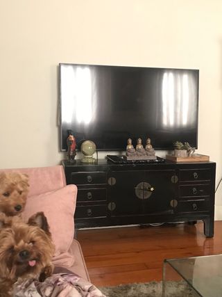 Mueble de salón negro estilo oriental.