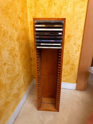 Mueble de madera para almacenar CDs. Se encuentra en buen estado. - Diseño vertical. - Ranuras para organizar CDs.