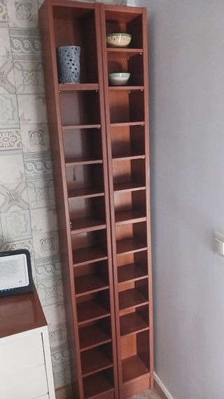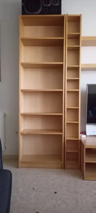 Estanterías Billy de Ikea en acabado haya. Se venden diferentes medidas. 40 x 28 x 202 + altillo 34 cm por 15 euros. 80 x 28 x 202 + altillo 34 cm por 25 euros. Estanteria para CD por 5 euros. - Estructura de madera. - Color natural.