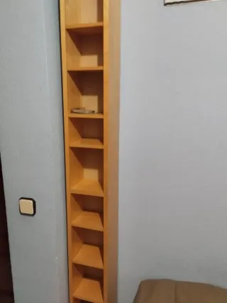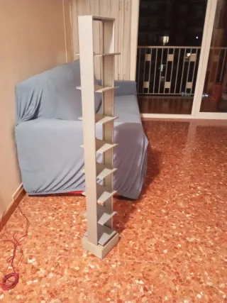 Estantería estrecha de madera, ideal para almacenar CDs. - Diseño vertical y delgado. - Perfecta para espacios reducidos. Entrego con varias baldas y enganches