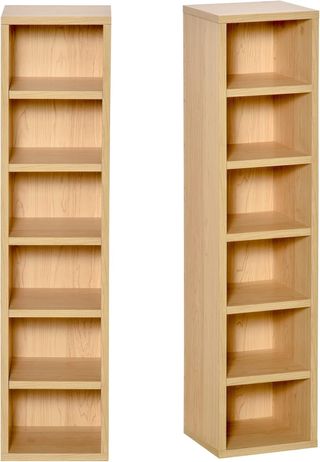 Dos estanterías altas y estrechas, perfectas para organizar tu colección de CDs. - Diseño vertical. - Múltiples baldas para almacenamiento.