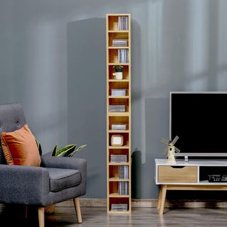 Estantería alta y estrecha, perfecta para organizar CDs. - Diseño vertical. - Múltiples baldas para almacenamiento.