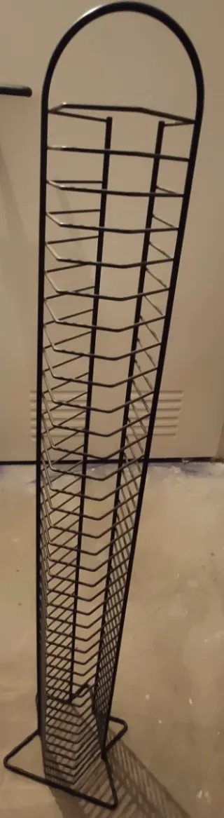 Práctica estantería de metal para organizar tus CDs. Tiene capacidad para 15 unidades. - Diseño moderno y funcional. - Ideal para mantener tus discos ordenados.