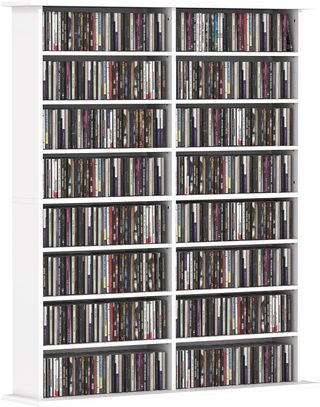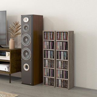 Juego de dos estantes para CD, perfectos para duplicar el espacio en casa o en la oficina. Cada estante tiene 6 estantes, para un total de 204 CD, Blu-rays, videojuegos y libros. Las estanterías son ajustables para adaptarse a tus necesidades. Fabricados en aglomerado resistente, garantizan durabilidad en el uso diario. Equipados con correas anti-vuelco para mayor seguridad. Dimensiones totales: 21L x 22.5P x 88.5A cm, capacidad de peso 15 kg por estante. Montaje requerido. El paquete incluye 2 estantes y un manual.