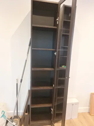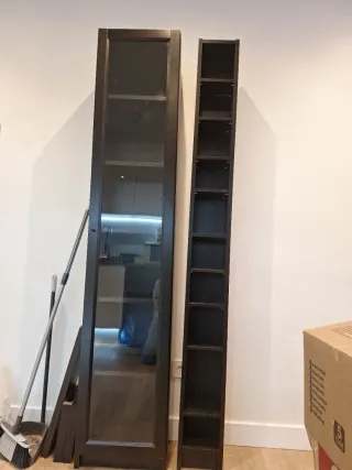 Mueble de almacenaje tipo librería. - Estructura de madera. - Puertas de cristal. No envío se recoge a pie de calle regalo con la compra columna Billy para CD o lo que quieras poner
