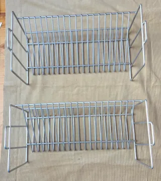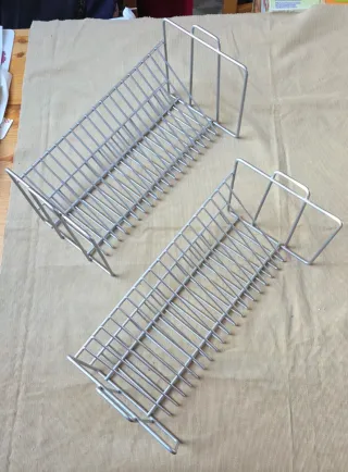 Conjunto de dos estantes apilables diseñados para organizar cajas de CD. - Fabricados en metal. - Color plateado. - Capacidad de 20 + 20 CD's