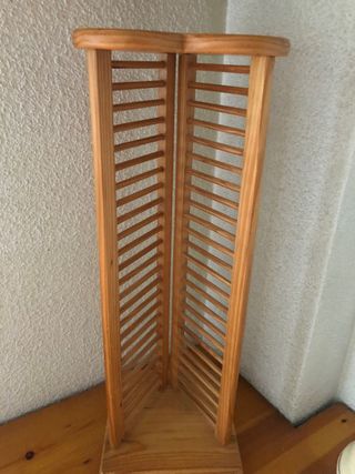 Estantería para CDs en madera, en muy buen estado. - Perfecta para organizar tu colección de CDs. - Dispone de espacio para almacenar otros objetos. - Tiene capacidad para muchos CDs y estantes adicionales.