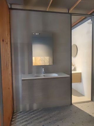 PORTALAVABO 1CD / 1PLV420S YURBATM CARACTERÍSTICAS: - Portalavabo suspendido de 1 cajón. - Diseño minimalista y moderno con acabado en cemento. FUNCIONES: - Amplio cajón con sistema Soft Close (cierre amortiguado). - Estructura resistente a la humedad. INFORMACIÓN TÉCNICA: - Dimensiones (An x Al x Prof): 1000 x 500 x 460 mm. - Material: MDF hidrófugo acabado cemento. - Incluye: Mueble de baño y lavabo de Corian solidsurface, y grifería de lavabo