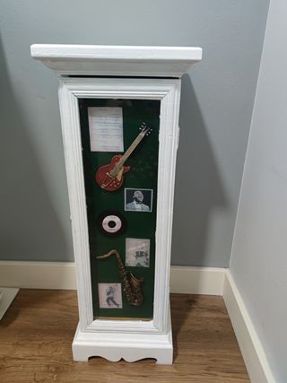 pequeño mueble de madera con 2 cajones. Es un multiusos para poner lo que se quiera, llaves etc. nosotros teniamos CD. En la parte frontal de cada cajon se puede poner una foto. UNO DE LOS CAJONES TIENE EN LA PARTE SUPERIOR UNA PEQUEÑA RAJA, se ve en la foto, medidas tambien en las fotos