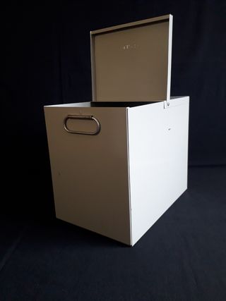 Caja De Seguridad de Banco. Grande. Fabricado por Líps. Empresa fundada en 1871 dedicada a la fabricación de cajas para Bancos desde 1899. Metal. Medidas: 35,5 x 23, 5x 29, 5 cms. Años 70. Se utilizaban en las cámaras acorazados de los Bancos. Cajas de alquiler de usuarios. Tapas abatible. Con un ingenioso sistema de pestaña que posibilita que, al portarla por el asa, no se abren las tapas. Perfecto para guardar objetos: latas, herramientas, libros, C.D. discos, monedas, sellos, billetes, mueble bar, botiquín, costurero. Útil y vintage. Práctico y decorativo. otros dos tamaños en el perfil.