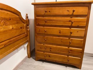 Mueble de estilo provenzal con varios cajones. - Diseño clásico y elegante. - Acabado en madera natural. - Ideal para almacenar objetos. - Medidas 107 ancho 113 alto 45 profundidad El espejo a juego también está en venta -Tiene marcas de uso