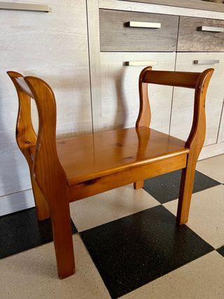 Banco auxiliar de madera ideal para dormitorio. Es de madera provenzal y tiene un diseño elegante y sencillo. - Perfecto como asiento auxiliar. - Diseño clásico con reposabrazos. - Como nuevo