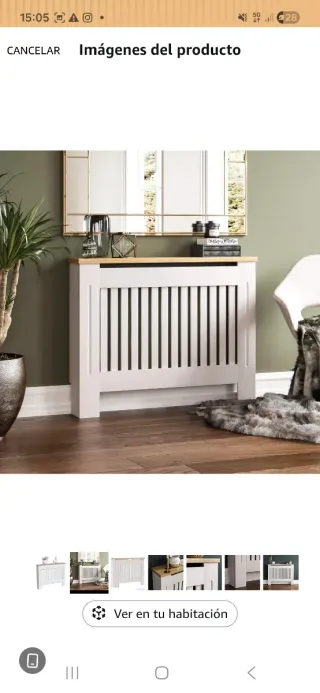Cubierta para radiador en excelente estado. - Diseño moderno con acabado en madera y metal. - Color blanco y marrón. Me equivoque de medida asi lo he montado una vez y desmontado directamente porque no cabe. Así tiene todo y nuevo