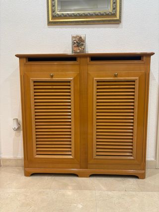 Vendo mueble rústico para cubrir radiador y, a la vez, usar como mueble auxiliar para colocar cosas (decoración, libros, plantas, etc.).