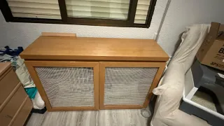 Urge. Es un antiguo cubre radiadores que actualmente se está usando de auxiliar en la cocina. Se entrega vacío. Medidas: 83 alto, 144 ancho y 28 fondo. No envío. Solo recogida.