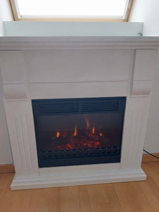 Chimenea eléctrica con mueble blanco incluido. Añade un toque acogedor a tu hogar. A estrenar, nunca se ha abierto la caja. - Diseño elegante en blanco. - Marco de madera. - Ventana de cristal.