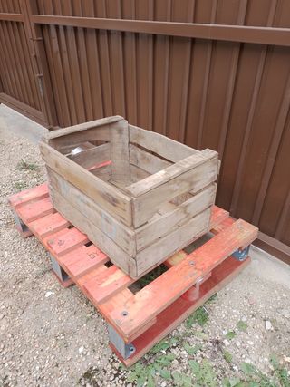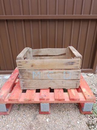 Antigua caja de fruta, está para restaurar lo ha dado todo. se hace envíos 50cm larga 35 cm ancho 30cm altura.