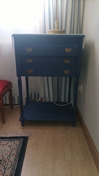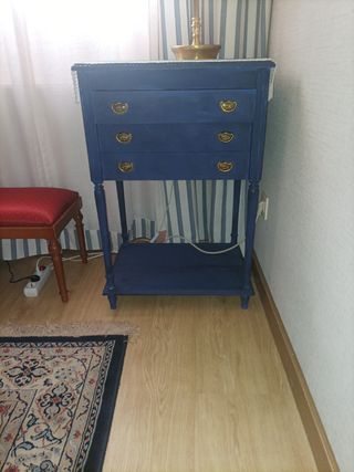 Mesilla noche azul restaurada 3 cajones y 2 baldas