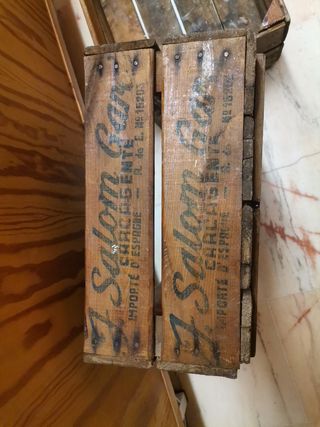 De madera... Con letreros... Ideales para decoración o mobiliario auxiliar. Miden 36 x 49 y tienen una altura de 18, 5 cm. Sólo queda una. Se puede enviar.