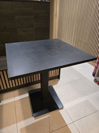Mesa de restaurante con un diseño moderno y elegante, perfecta para cualquier establecimiento. - Disponible 5 unidades - Tablero cuadrado. - Base acero pesado muy robusta para mayor estabilidad.