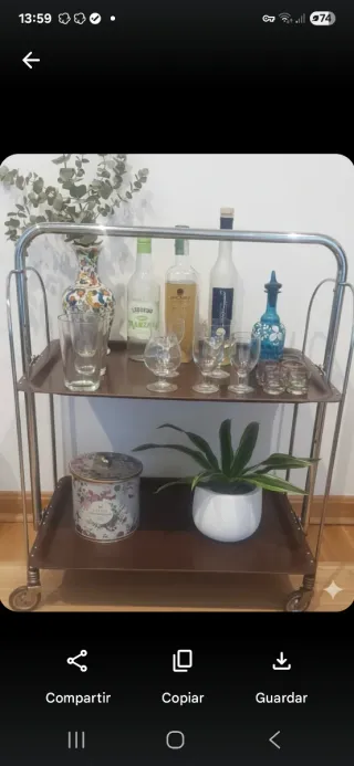 Camarera de servicio de la prestigiosa marca Raguer. Excelente estado; ha sido cuidadosamente limpiada y restaurada conservando toda su pátina original. El cromado brilla como el primer día. Estructura minimalista en metal cromado con dos bandejas de formica en color madera oscura (wengué/nogal). Es totalmente plegable, ideal para guardarla en cualquier rincón cuando no se usa. Las ruedas giran perfectamente. Perfecta para decoraciones Mid-Century Modern, nórdicas o para darle un toque retro a tu salón o terraza. #Vintage #Retro #Raguer #Camarera #CarritoBebidas #Diseño #Años60 #Interiorismo.