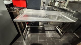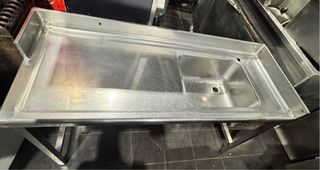 Se vende este fregadero industrial con mesa de trabajo integrada, fabricado totalmente en acero inoxidable de alta densidad. Es la pieza clave para cualquier negocio de hostelería, obrador o incluso para un garaje/jardín exigente. Higiene y Durabilidad: El acero inoxidable no solo es eterno, sino que facilita una limpieza profunda y cumple con todas las normativas sanitarias. Medidas totales: 152 cm (Largo) x 60 cm (Fondo). Material: Acero Inox de grado alimenticio. Estado: En muy buen estado, listo para ser instalado y empezar a trabajar. Ideal para: Restaurantes, bares, cafeterías, carnicerías, obradores o catering.