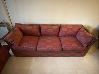 Sofá antiguo 3 plazas madera y tela