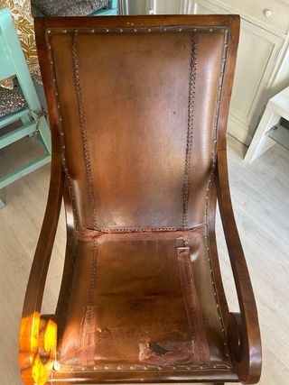 Butacón de estilo Java con estructura de madera y detalles en piel. Ideal para proyectos de restauración. - Diseño clásico. -Piel
