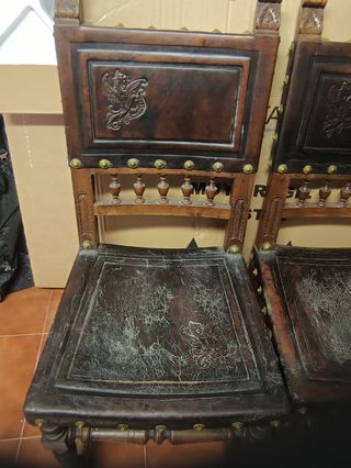 Se vende lote de dos sillas portuguesas muy antiguas, fabricadas con madera de nogal. Son para restaurar.