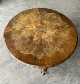 Pequeña mesita auxiliar con un diseño clásico, ideal para proyectos de restauración. Su estructura de madera ofrece una base sólida para renovar. - Patas torneadas. - Acabado oscuro. - Más artículos interesantes en mi perfil.