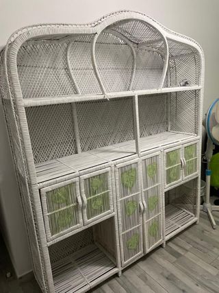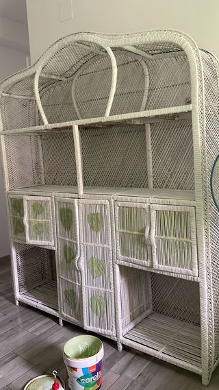 mueble de mimbre restaurado a la tisa blanco
