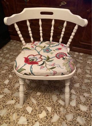 Silla restaurada de madera baja con pintuta nueva y tapiceria nueva