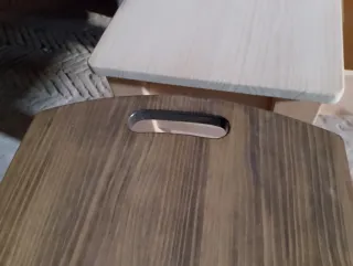 Conjunto de dos mesas de madera, ideales para cocina o restaurante. Una mesa tiene un acabado en tono nogal y la otra en madera en bruto para que la pintes como desees. Ideal para cocinas,mesa de apoyo restaurante o cortar jamón,etc...,las 2 por 300€ una por 200€ - Diseño con cajón. - Estante inferior para almacenamiento adicional.