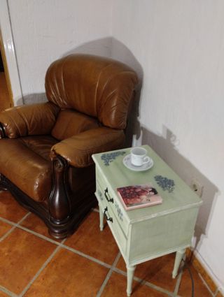 Mesilla preciosa. Pintada por mi con pintura chalk paint gris. Intentando imitar a una mesilla como antigua. Con un dibujo de una mariposa. Esta forrada por dentro. Es amplia. Maravillosa para cualquier estancia. Las medidas interiores, para almacenaje, son las siguientes: 47 cm de ancho. 44 cm de alto y 30 cm de profundidad.