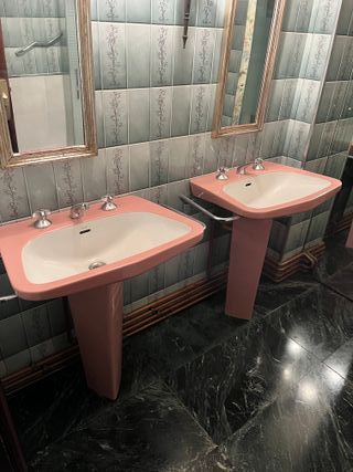 Vendo dos lavabos retro de los años 70 en color rosa, marca "Roca". Los dos se encuentran en perfecto estado.