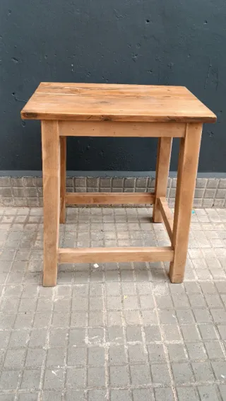 Se venden tres mesas de madera de pino macizo. Son robustas y están en buen estado, aunque muestran señales de uso. - Ideales para restaurar o usar como están. - Muestran un aspecto rústico y antiguo. - Perfectas para darle un toque vintage a tu hogar. (45€ cada una)