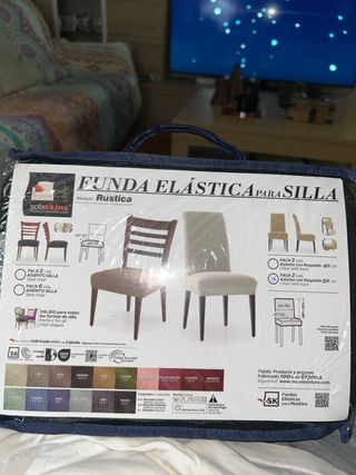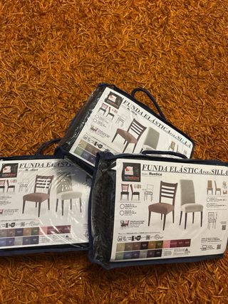 Tres fundas elásticas para sillas Sofaskine, modelo Rustica. Ideales para proteger y renovar tus sillas. - Pack de 2 unidades por funda. - Válidas para sillas con respaldo de 40-50 cm. - Tejido de poliéster, agradable al tacto. - Fáciles de colocar y mantener.