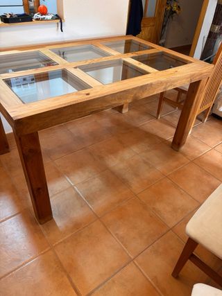 Mesa comedor madera pino rústica cristal
