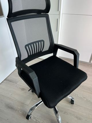 Silla de despacho seminueva con ajuste hidraulico de subida. Pequeñas rayas en reposabrazos.
