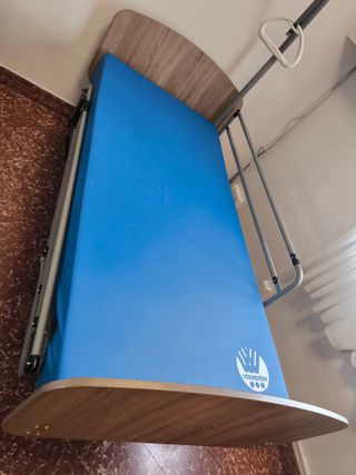 Cama articulada eléctrica Vermeiren Illico de 90 x 200 mm, con ruedas. Semi-nueva (6 meses de uso) + colchón visco + trapezio + carro de transporte. Precio negociable. Nueva de tienda cuesta el doble. Funcionamiento impecable, sin ruidos estraños ni desgaste estructural. -Movimiento de elevación total. -Regulación independiente del cabezal y del reposapies. -Barandas laterales de seguridad. -Incorporador trapezio incluido. -Colchón viscoelástico CQF en perfecto estado, sin manchas ni deformaciones. -Carro para facilitar el transporte una vez desmontado. -Mando eléctrico. No incluyo desmontaje, transporte ni montaje.
