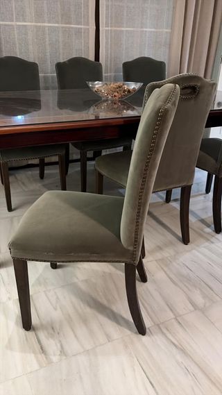 ✨ Gran oportunidad – Mesa de caoba + 6 sillas a juego ✨ Se vende preciosa mesa grande de caoba maciza, seminueva y en excelente estado. Muy poco uso. Incluye 6 sillas tapizadas a conjunto, con elegante acabado de tachuelas decorativas en el perímetro, que le dan un estilo clásico y sofisticado. Conjunto de gran calidad, robusto y con mucha presencia. Ideal para quienes buscan elegancia y durabilidad a un precio muy por debajo de su valor original. 📩 Más información por privado. ¡Merece la pena verla!