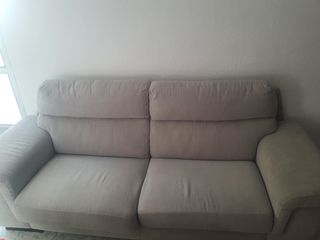 Sofá de dos plazas marrón clarito. En muy buen estado y totalmente desenfundable para su limpieza. Se regala funda para mejor conservación.