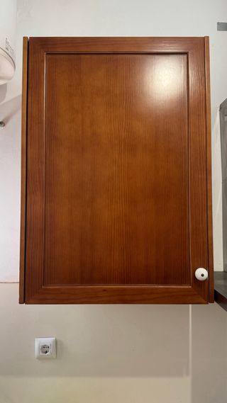 Cocina de madera en color marrón, seminueva, para desmontar. Ideal para quien busca darle un toque rústico a su hogar. - Comprada e instalada en 2018. - Muebles de cocina en buen estado. - Incluye encimera. - Cajones con cierre de seguridad - Se vende con electrodomésticos. - Desmontaja a cargo del comprador. El precio es negociable. El fregadero de piedra NO esta incluido.